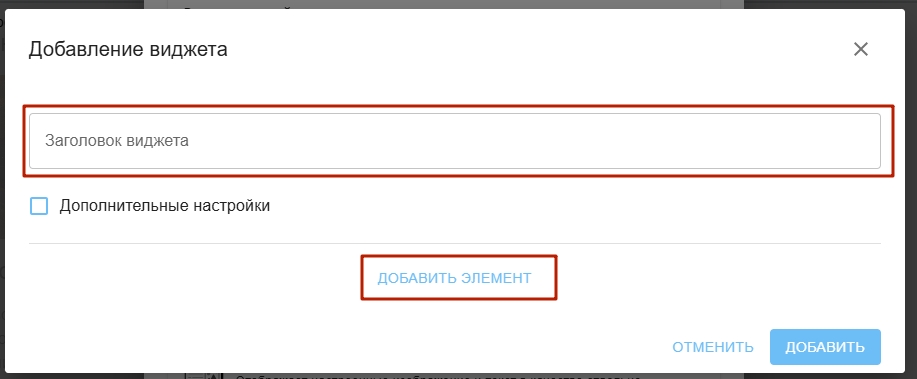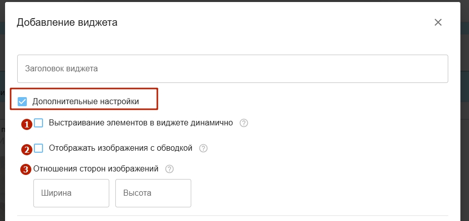 Для более гибких настроек отображения элементов в виджете используем дополнительные настройки. При установлении флага в пункте “Дополнительные настройки” отображаются следующие настройки: