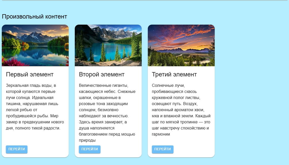 Для верстки контентных страниц, а также вывода какой-либо важной информации на страницу, можно воспользоваться виджетом “Карточки с произвольным котнтентом”. Как добавлять виджет на страницу можно ознакомиться в этой статье Что такое виджеты?