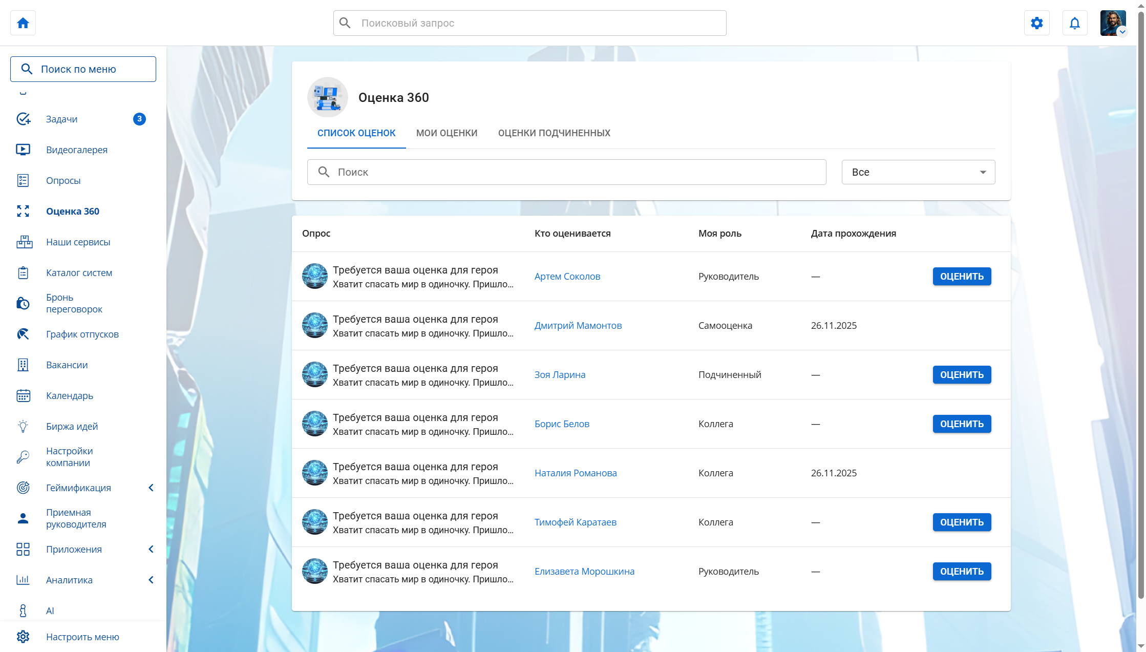 Интерфейсы оценки 360 могут настраиваться под ваши задачи