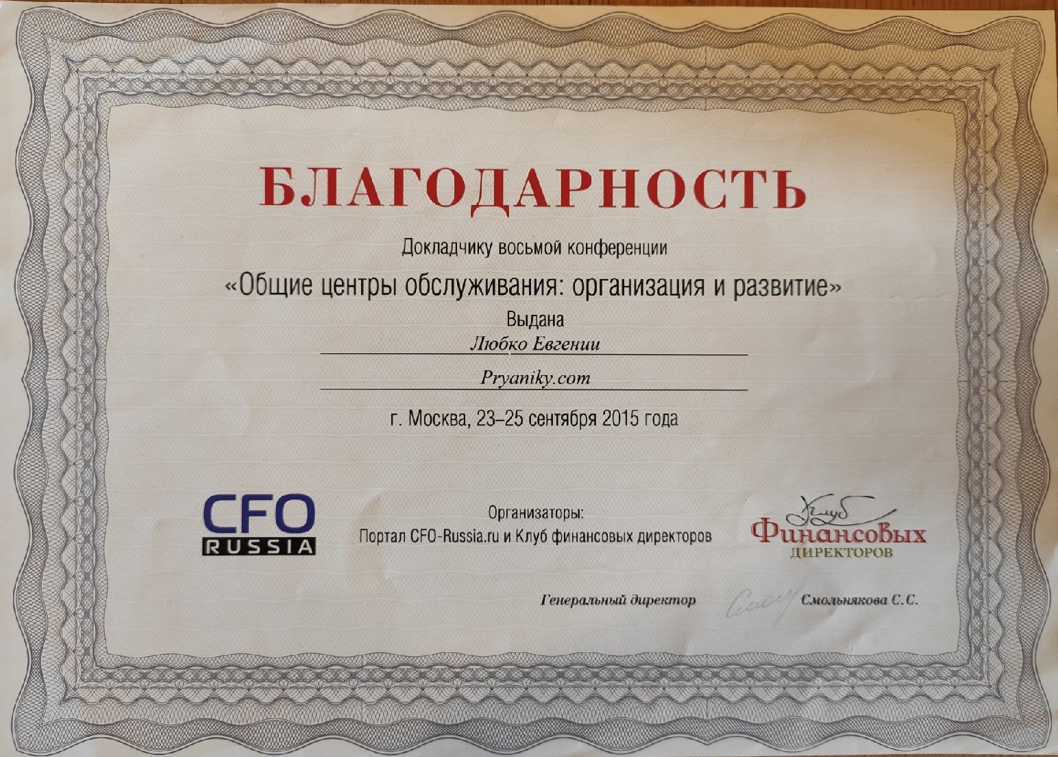 Выступление на конференции «Общие центры обслуживания: инновации и развитие»